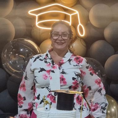 Glänzende Augen und ein strahlendes Lächeln zeigt uns diese frisch gebackene Bäckerin mit einem Doktorhut aus Licht!