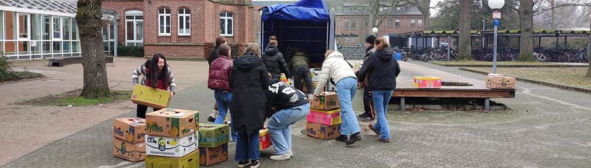 Am Donnerstag, 11.1.24, machten sich zwei ehrenamtliche Helfer des DoVira Help Foundation e.V. mit einem VW-Bus plus Anhänger auf den Weg von Köln zu uns an die Canisiusschule, um ungefähr 70 Bananenkisten mit Kerzenresten abzuholen. Der Verein unterstützt alle hilfsbedürftigen Personen, seit Februar 2022 besonders die Menschen in der Ukraine.