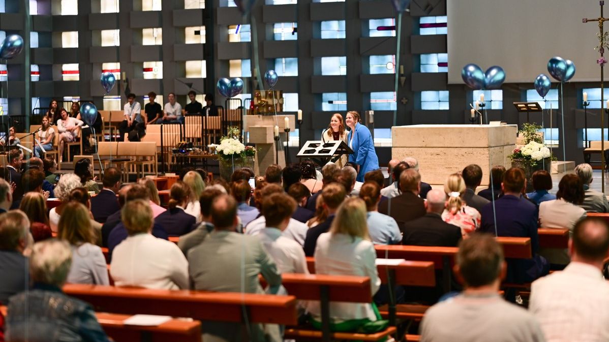 Die Festgemeinde feierte gemeinsam mit ihren Familien und dem Lehrerkollegium den von Pastor Hagedorn und Pastoralreferentin Vera Naber zelebrierten Gottesdienst. Der Projektchor – unter der engagierten Leitung von Andrea van der Linde – gestaltete sowohl während der Messe als auch im weiteren Verlauf des Festaktes den musikalischen Rahmen.