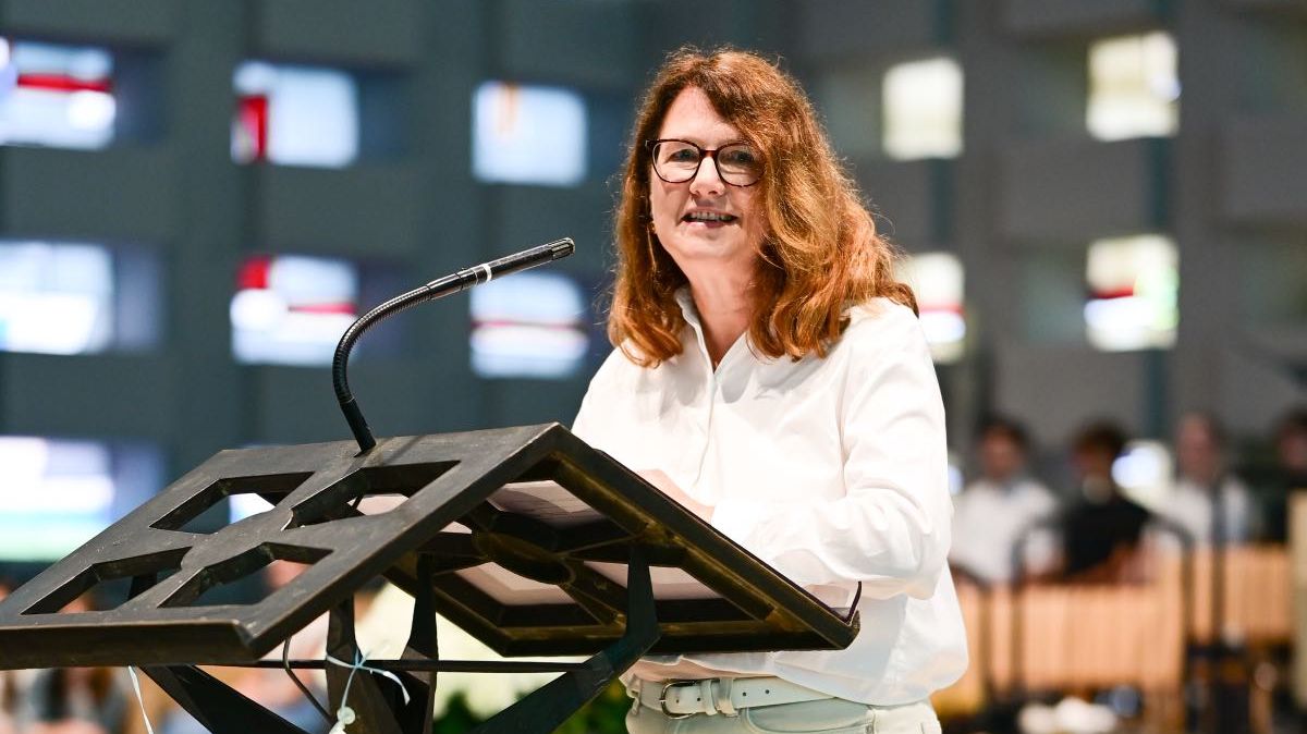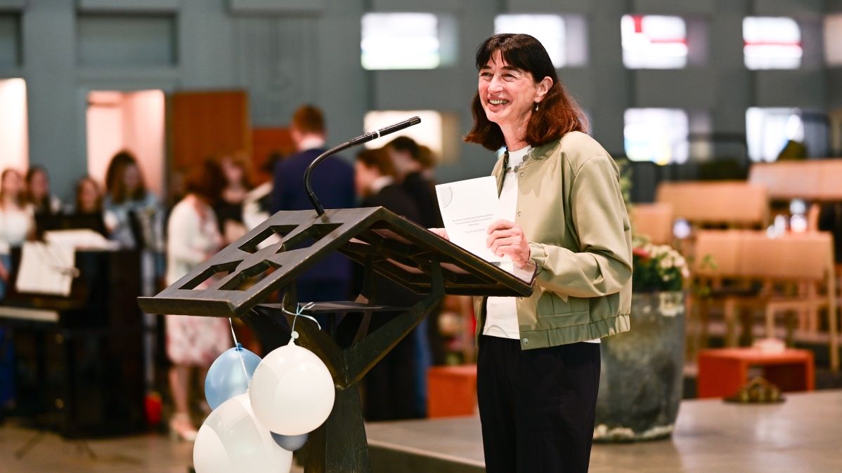 Frau Karola Voß, Bürgermeisterin der Stadt Ahaus, ermutigte die Abiturientia mit einer Mutmach-Geschichte von Lorenz Pauli. Manchmal könne Mut auch darin bestehen zu sagen: „ICH MACH NICHT MIT!“