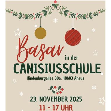Am kommenden Sonntag ist die Canisiusschule wieder adventlich geschmückt und öffnet ihre Tore für unseren alljährlichen Basar am Sonntag zwischen 11…
