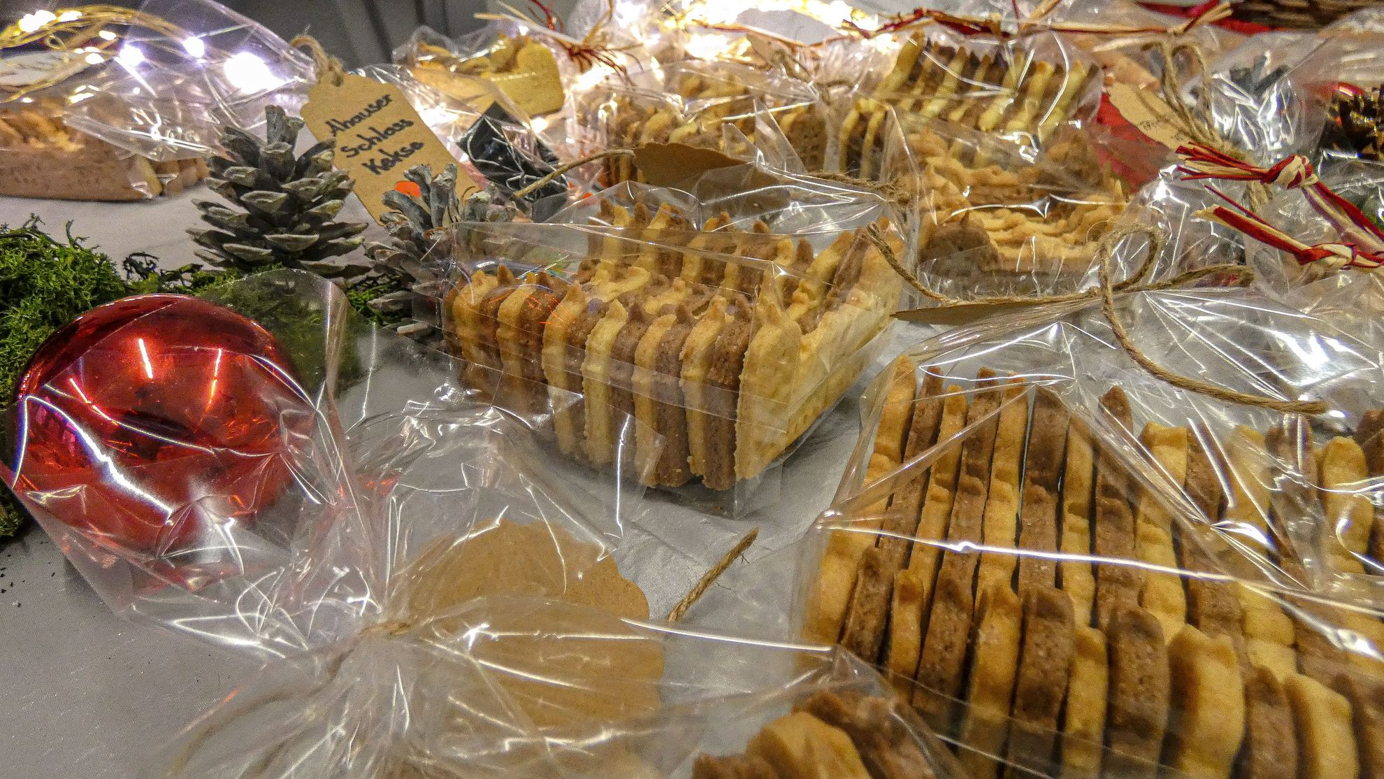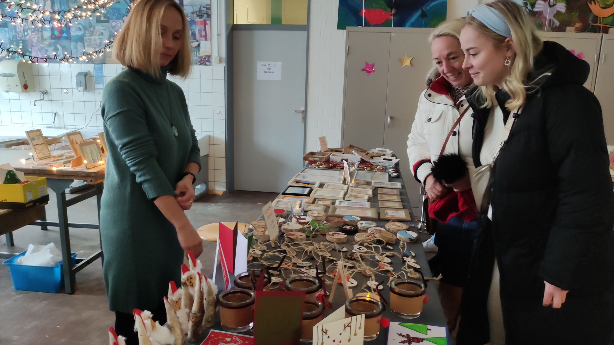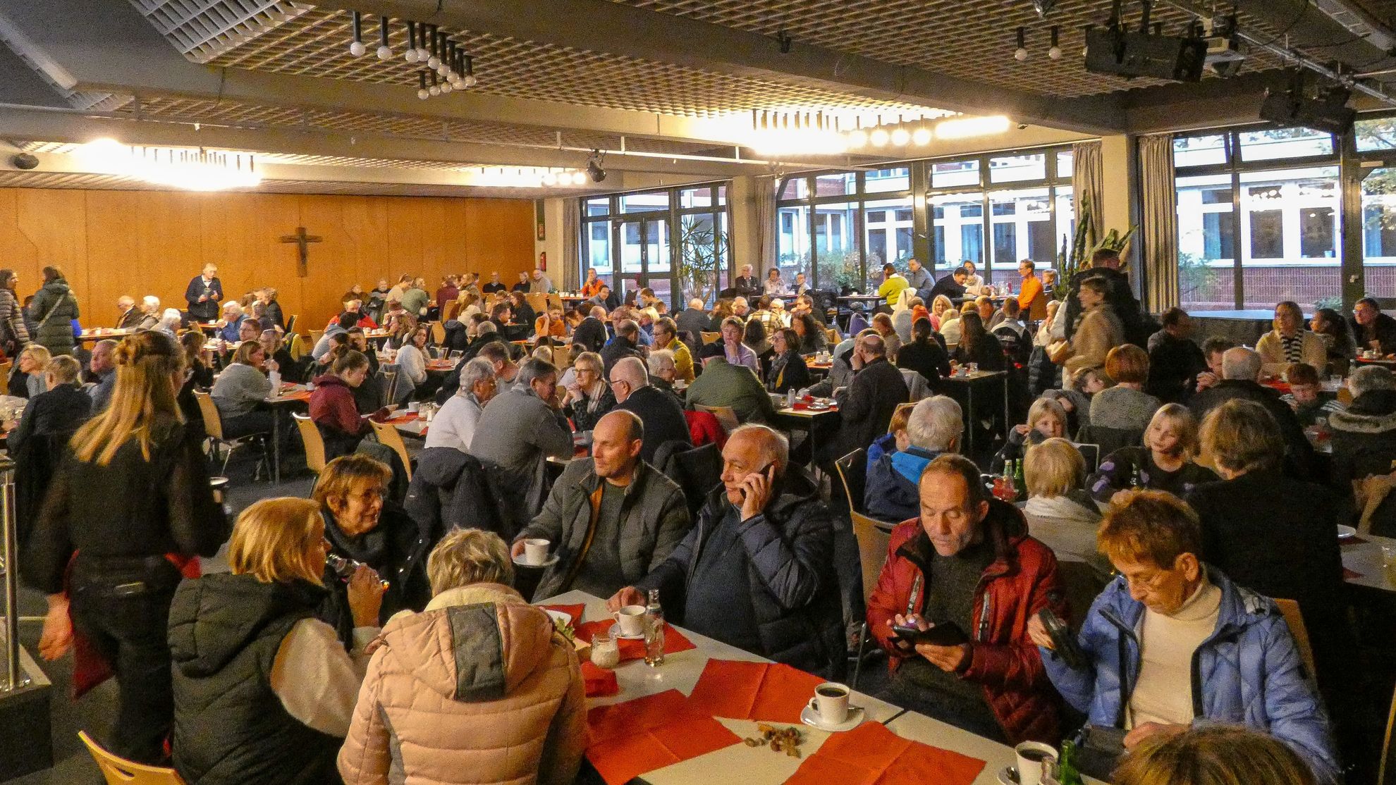 Am Sonntag, 20. November, strömten die Besucher in die Canisiusschule: Plätzchen, Marmeladen, Reisigbesen, Adventskränze und alles, was die Vorfreude auf den Advent fördert, wurde in großer Vielfalt angeboten. Anders als geplant fand der Leme-Basar wetterbedingt nicht als Lichterfest auf dem Schulhof statt, sondern - wie vor Corona - im Schulgebäude. Das freute besonders die ehemaligen Schüler und Schülerinnen, die sich ab zwölf Uhr trafen und froh waren, sich nach langer Zeit in ihrer alten Schule zu sehen. Die Cafeteria in der Aula war fast durchgehend besetzt und man konnte richtig merken, wie froh alle waren, sich zusammen zu setzen und auszutauschen.