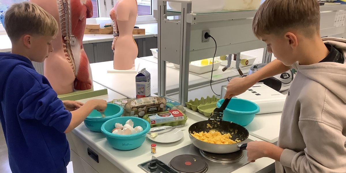 In den 6. Klassen drehte sich zwei Tage lang alles um gesunde Ernährung. Die Schüler*innen lernten die Ernährungspyramide kennen, verkosteten Lebensmittel, analysierten Getränke und stellten Power-Sandwiches her.