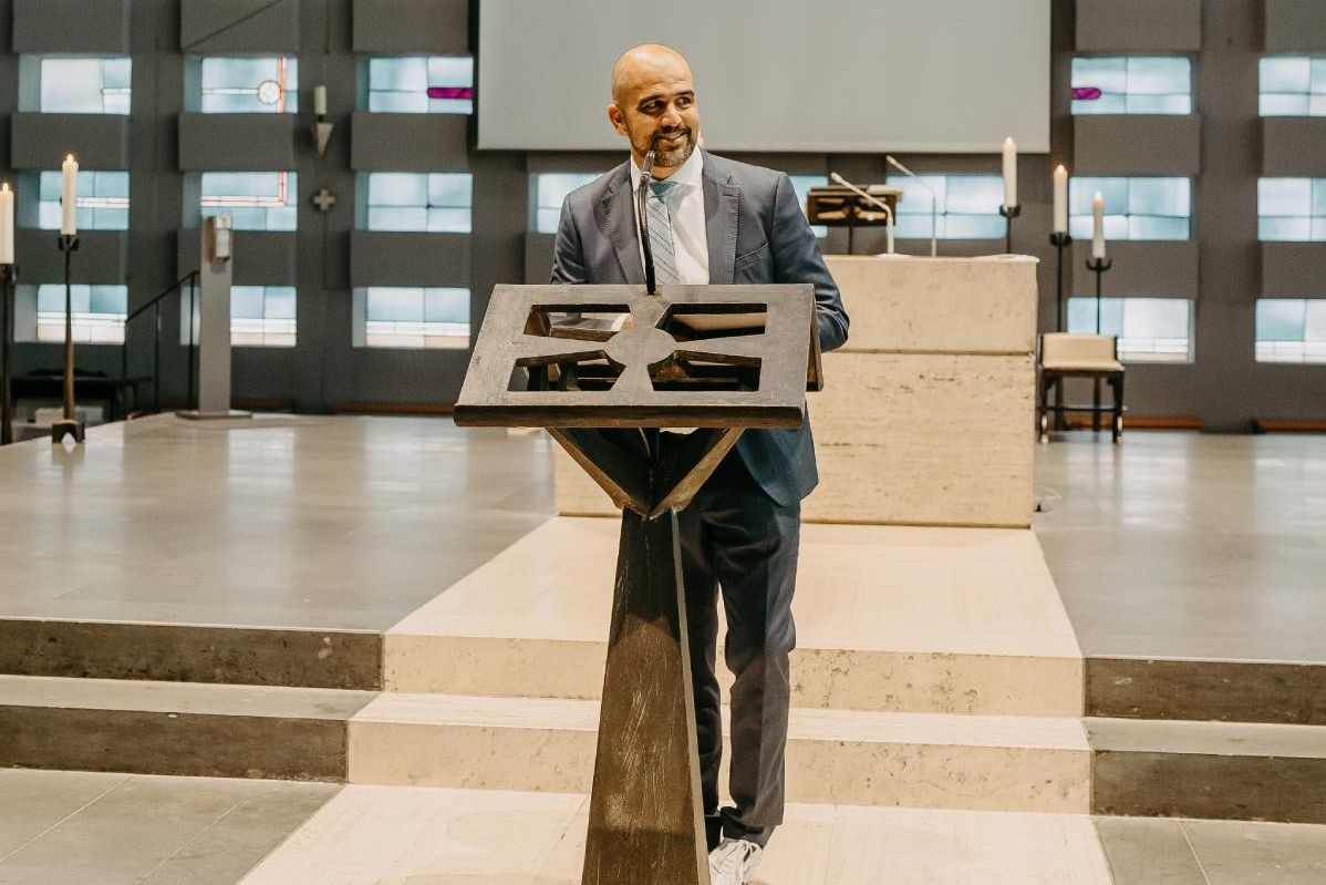 Herr Hakenes betonte in seiner Festrede die Herausforderung, das Abi-Motto, das ja zunächst einmal für Oberflächlichkeit und grenzenlosen Konsum stehe und nicht zu einem solchen Anlasse passe, mit den Werten unserer Schule in Einklang zu bringen, indem er es grammatikalisch auseinanderpflückte, um es dann eingehend von den unterschiedlichsten Seiten zu beleuchten. Er verwies auf die Rede von Barack Obama, der 2008 mit dem – inzwischen vielfach wiederholten – Ruf „Yes, we can“ zu Gerechtigkeit, Wohlstand und Weltfrieden aufrief. Das affirmative Yes deutete Herr Hakenes als Zuspruch zu Mut und Optimismus und das Personalpronomen we in der ersten Person Plural stehe für Gemeinschaft. Der Schulleiter tauchte tief in das Barbieland ein, um zu überraschenden Erkenntnissen zu kommen. Das Titellied „What I was made for“ des Barbie-Films, gesungen von Billie Eilish, lege als grammatikalische Passiv-Konstruktion die Vorstellung nahe, dass wir „gemacht“ seien. Ob als Geschöpfe Gottes gemacht, sprach Herr Hakenes nicht aus, legte den Gedanken aber nahe. Die Abiturientia forderte der Schulleiter nun auf, von der passiv-Form in eine aktive Haltung zu wechseln und Verantwortung für das eigene Leben zu übernehmen und einen Standpunkt in der Welt zu beziehen.