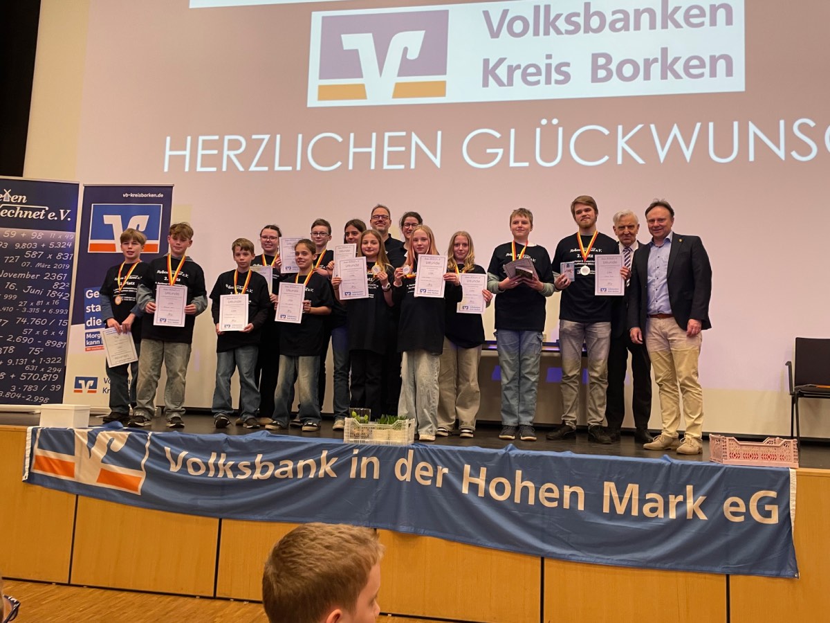 49 Schülerinnen und Schüler unserer Schule haben an der 6. Borkener Kreismeisterschaft im Kopfrechnen teilgenommen und ihre mathematischen Fähigkeiten unter Beweis gestellt. Herzlichen Glückwunsch an alle Teilnehmerinnen und Teilnehmer – ihr habt das großartig gemacht!