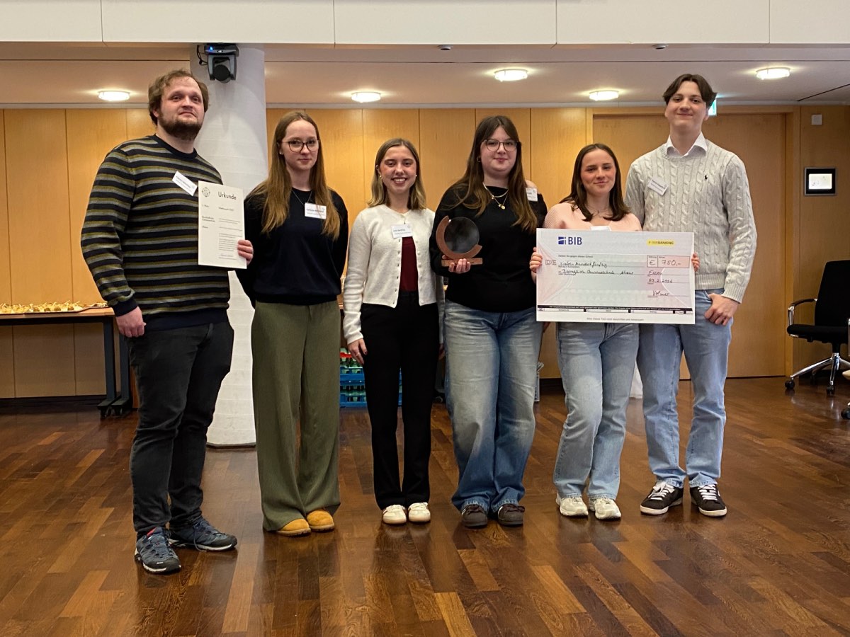 Insgesamt konnte die Q1 1250 Euro für ihre Stufenkasse gewinnen. 750 Euro erhielt der Jahrgang für die meisten Einsendungen pro Schule und 500 Euro für einen herausragenden Beitrag.
