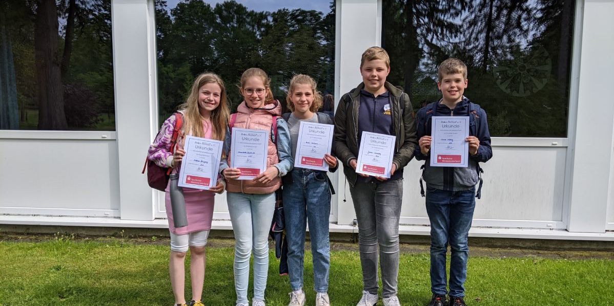 Bei der Siegerehrung, die von den Verantwortlichen des Vereins „Reken rechnet e.V.“ und dem Weltmeister im Kopfrechnen durchgeführt wurde, nahmen unsere Schüler*innen ihre Urkunden entgegen und können sehr stolz auf ihre Leistungen sein!