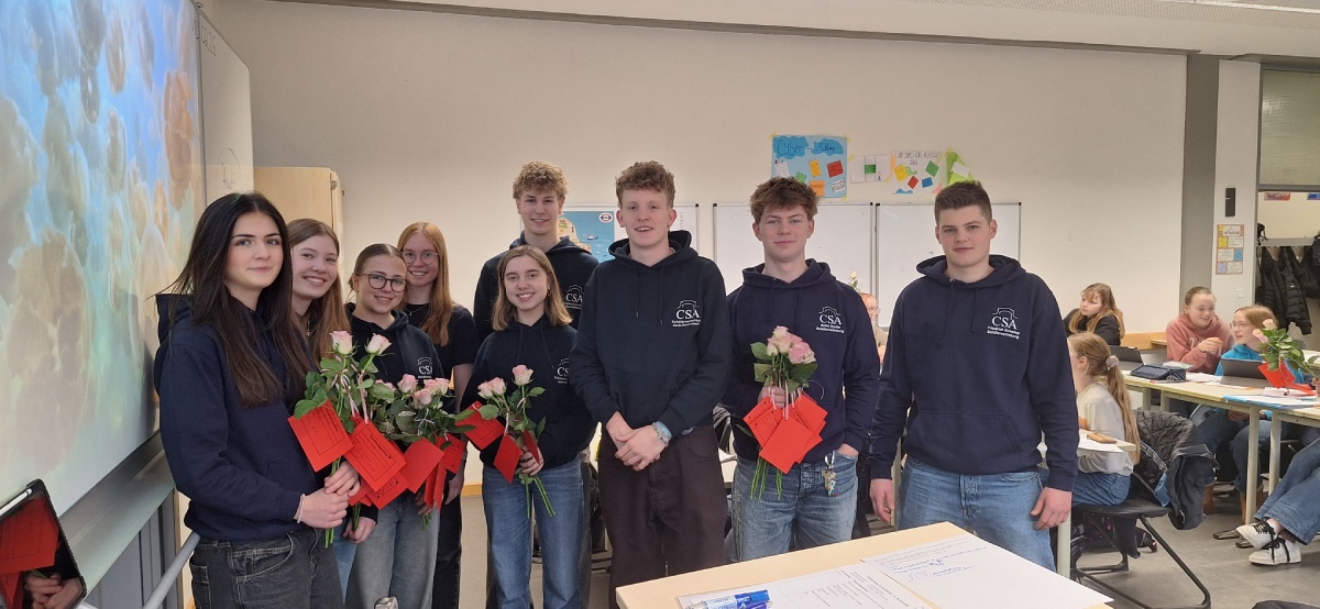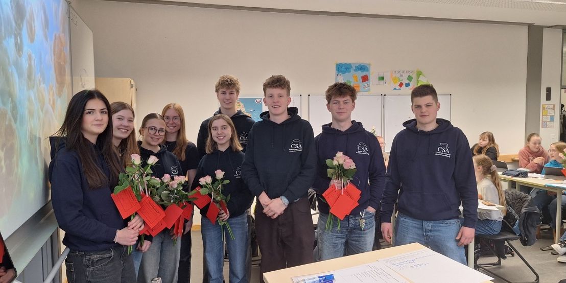 Die bestellten Rosen wurden von den Mitgliedern der SV während des Unterrichts verteilt – sehr zur Freude vieler überraschter Empfängerinnen und Empfänger. Ob als Zeichen der Freundschaft, der Wertschätzung oder einfach als nette Geste zwischendurch: Die Aktion brachte viele lächelnde Gesichter in unsere Klassenräume.