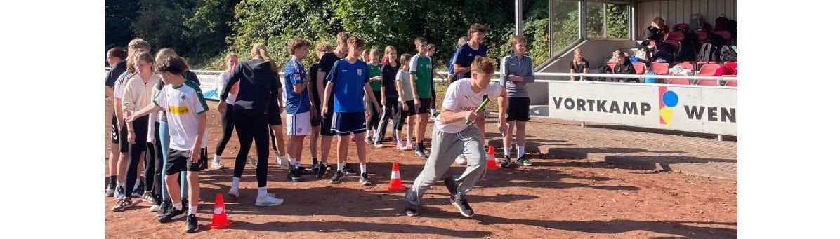 Sich bewegen und anstrengen und dabei Spaß haben und in der Klassengemeinschaft das Schuljahr beginnen stand im Vordergrund. Die Klassen 6 bis 10 wurden an sieben unterschiedlichen Stationen von der Stufe EF begleitet und in den Pausen von der Q1 am Obststand mit frischen Obstspießen versorgt.