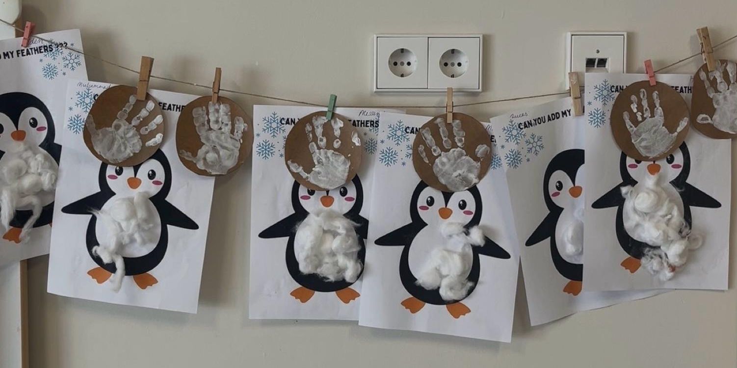 Ein weiteres besonderes Erlebnis war der Peace Day. An diesem Tag haben wir gemeinsam mit den Kindern etwas für ihre Eltern vorbereitet. Außerdem haben wir einen Raum passend zum Thema Antarktis dekoriert. Der Raum sah am Ende aus wie eine kleine Eiswelt. Die Kinder haben dabei viel über die Tiere der Antarktis gelernt und passende Plakate gebastelt.