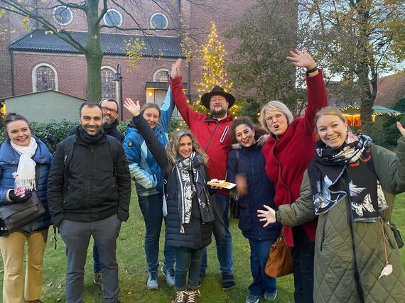 Kennenlernspiele auf Englisch, das QR-Code Spiel zur Geschichte der Schule in drei Sprachen, die internationale Begrüßung im Rathaus, Projektarbeit in Kleingruppen sowie der Tag in Münster auf dem Weihnachtsmarkt und im Zoo hat tolle Erinnerungen geschaffen und die Gruppe gut zusammenwachsen lassen. Rückbesuche in den drei Ländern sind natürlich in der Zukunft geplant – dann sehen wir uns alle wieder!
